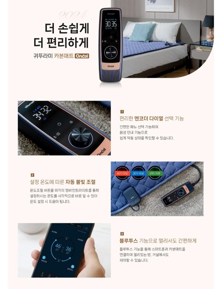 블루투스 기능으로 스마트폰으로 카본매트를 멀리서도 간편하게 조절제어가능