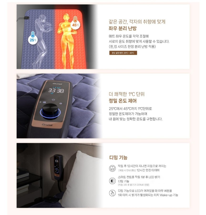 좌우 분리난방으로 서로의 온도취향에 맞게 조절가능